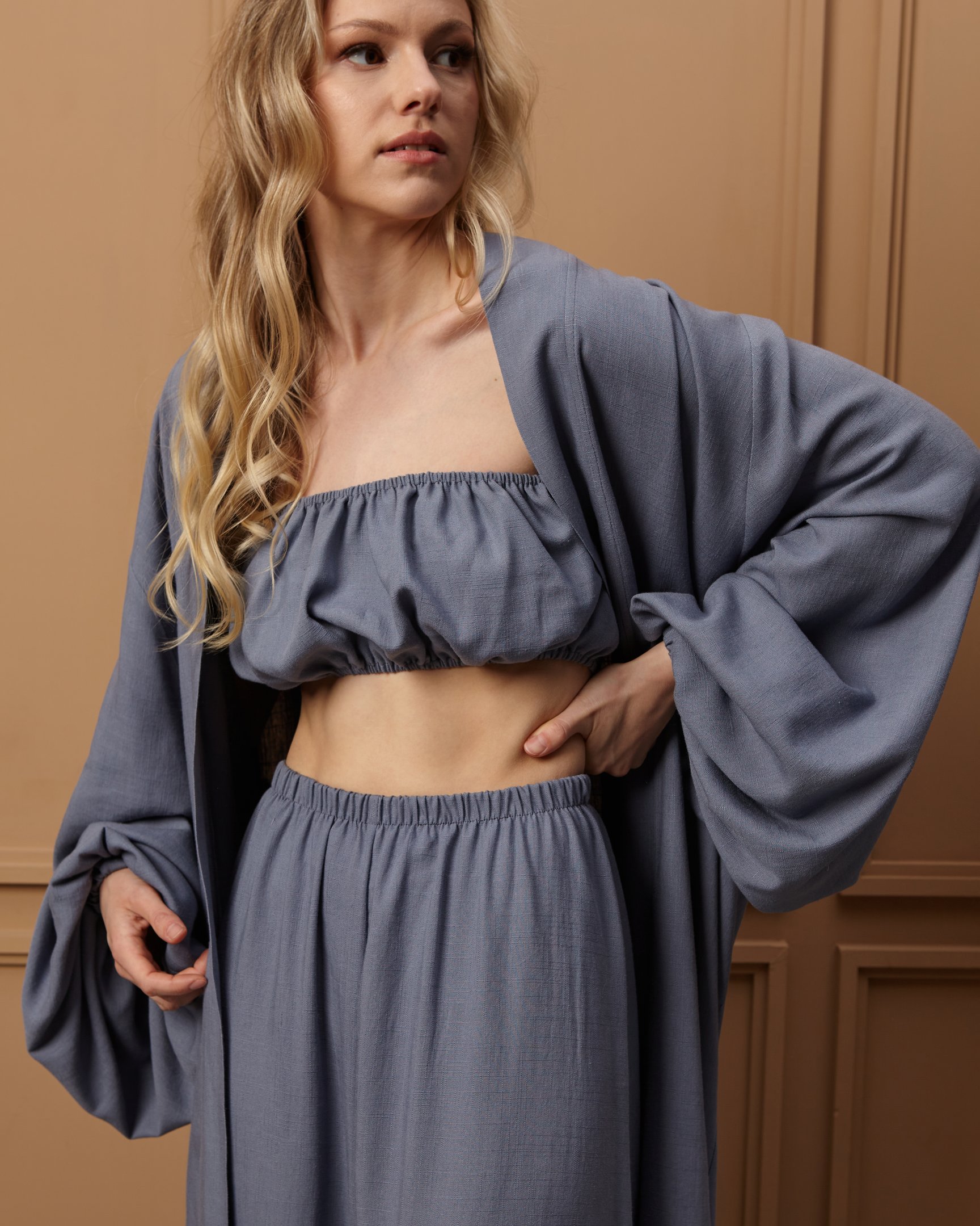 Each design is lovingly crafted in Lithuania, from start to finish. We work in small batches, using Oeko-Tex-certified linen and cotton blends that are safe for your skin and gentle on the planet. Whether you’re slipping into a flowing dress, a pair of high-waisted trousers, or a soft, wraparound top, every piece is made with purpose — to feel light, breathable, and truly wearable.